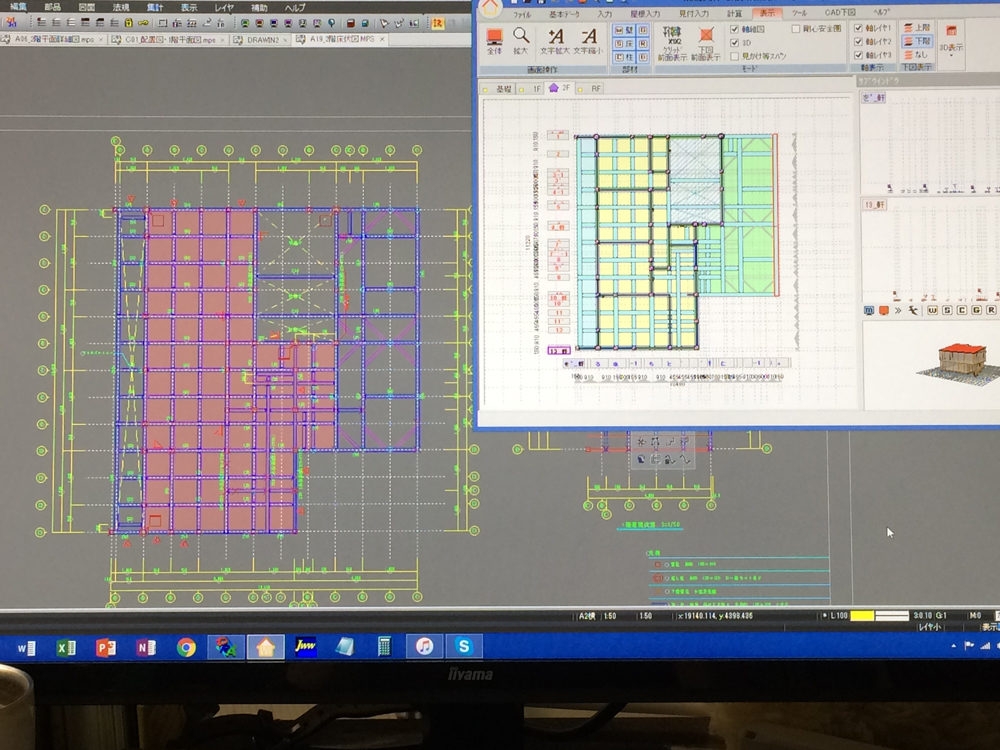 プランや建物の高さが固まったので、構造の検討をしながら構造図面の作成を進めています。